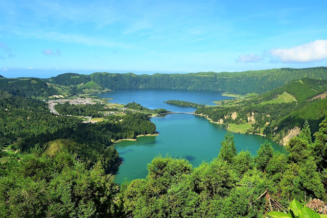 1) Primeira paragem - Lagoa das Sete Cidades - constituída por duas lagoas, uma azul e outra verde, esta é a maior lagoa de água doce dos Açores. Um cenário digno de ser visto AO VIVO, de uma beleza extrema, indescritível e que guarda uma historia de um grande Amor! Se quiserem saber qual é a lenda vejam aqui!