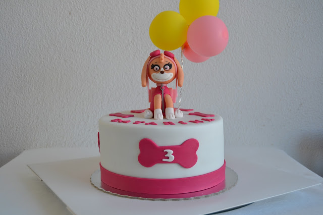 A minha mini cliente tinha uma exigência, tinha de ser um bolo rosa e com a Sky, da Patrulha Pata, a sua preferida, e cá está ele!